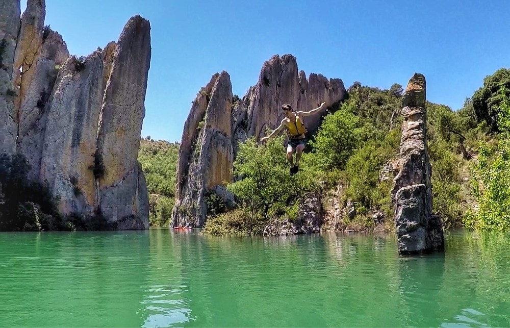 Ya antiguamente la población del territorio conocía y disfrutaba de este lugar, haciendo que en el siglo XI se construyera la fortificación de San Vicente que domina la parte principal de esta excepcional formación geológica; lugar donde mediante un pequeño trekking(15 min) iremos a descansar, comer y relajarnos con estas increibles vistas del embalse de Canelles.